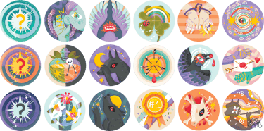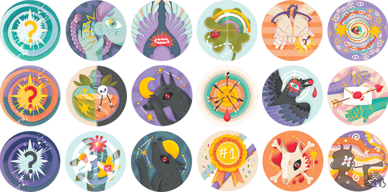 J'ai fait une carte par ici, une carte par là, et au bout de 3 semaines, je me suis retrouvée avec un set de 15 cartes. Juste avant ce projet je venais de clore un projet d'illustration d'oracle à plus de 50 cartes alors ça m'a paru largement suffisant. Je ne me souviens plus de quelles concessions j'avais fait, mais les cartes finales me permettaient totalement de jouer à une partie. En plus, j'avais ajouté des cartes avec des récaps de règles, des définitions des personnages et des propositions de variations.